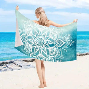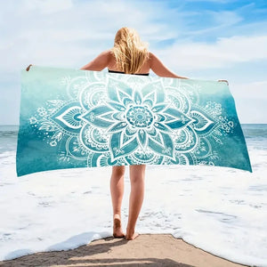 1 set of blue mandala beach towels, 90 * 180cm enlarged size, soft and skin friendly with strong water absorption