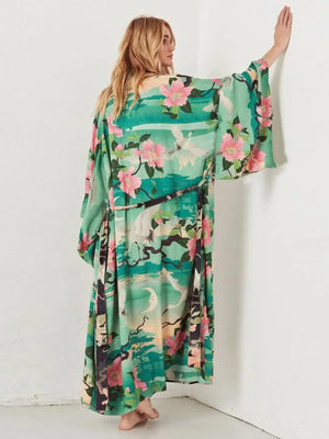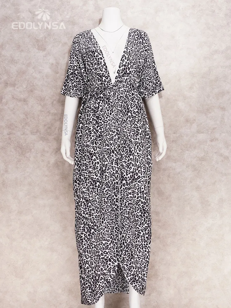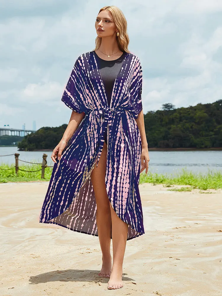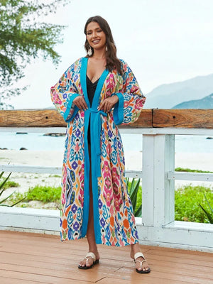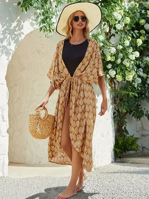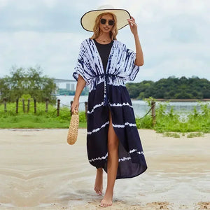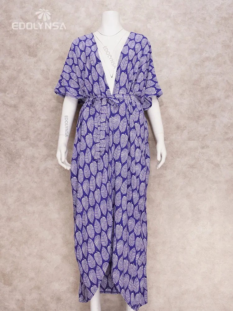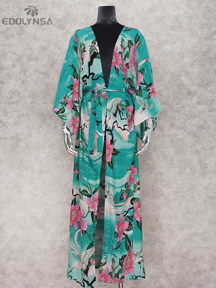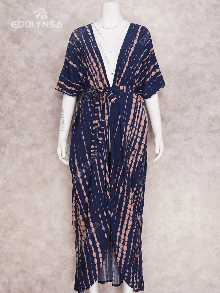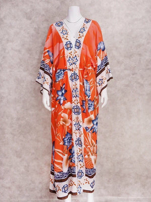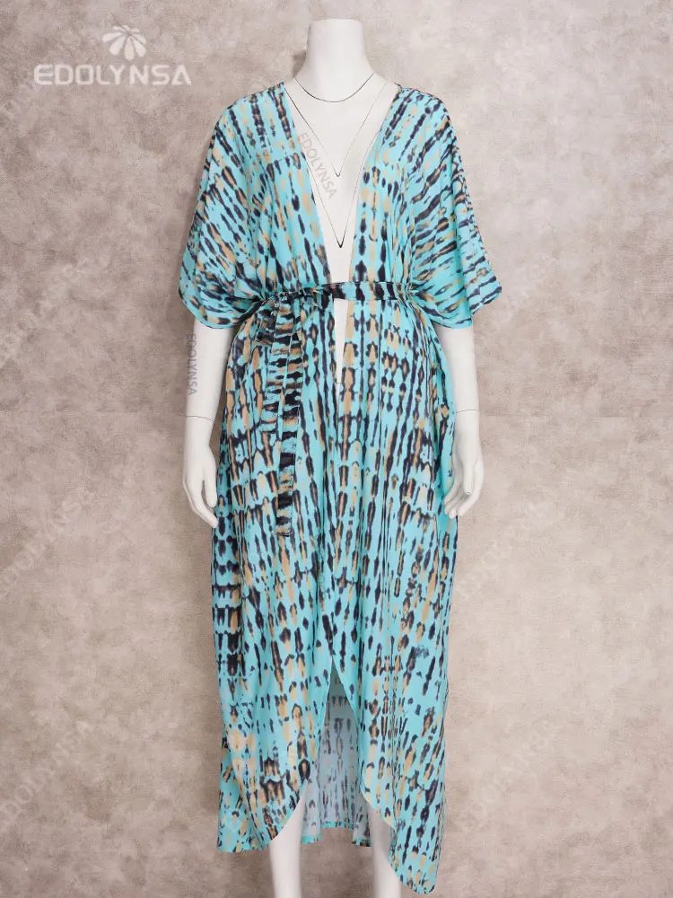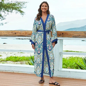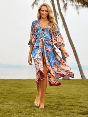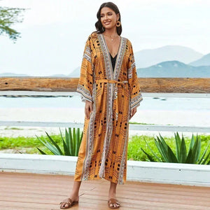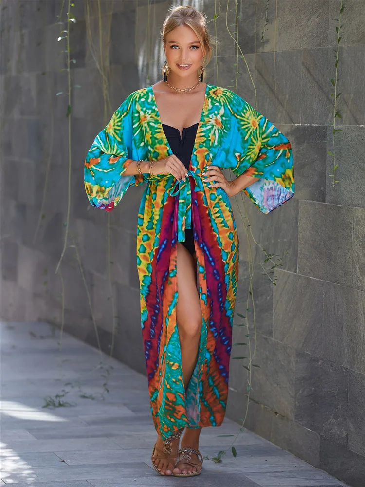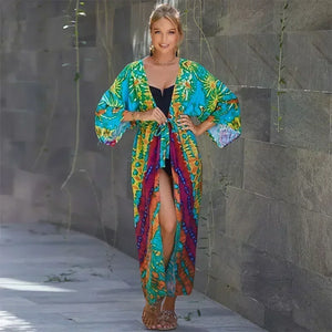 2023 Bohemian Printed Summer Beach Wear Bikini Wrap Dress Tunic Summer Women Swimsuit Cover-ups Kimono Cardigan Q996