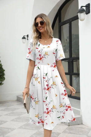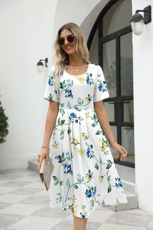 2025 summer Europe and the United States summer fashion casual ladies elegant printed round neck short-sleeved long dress