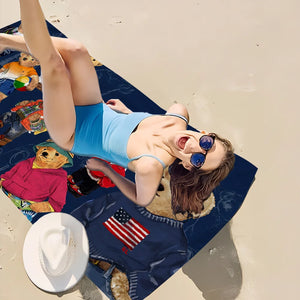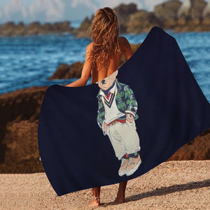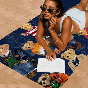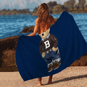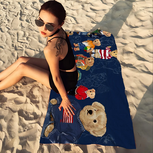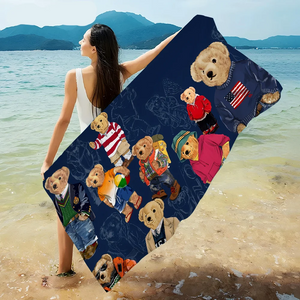Cute Teddy Bear Happy Microfiber Printed Beach Towel Mountain Climbing Yoga Beach Swimming Running Absorbent Soft Towel