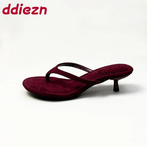 Fashion Round Toe Women Thin Heels Slippers Slides Female Flip flops Sandals Spring Summer Ladies Heeled Slippers Shoes Pumps