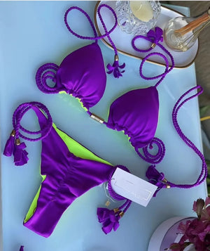 New Women Bikini Backless Rope Triangle Swimsuit Multicolor