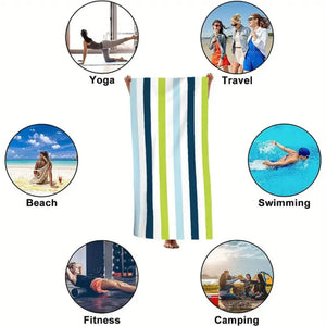 Super absorbent quick-drying beach towel, striped design,soft lightweight, beach travel swimming camping towel machine washable