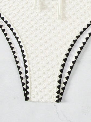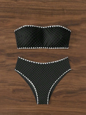 Swimwear White 2 Piece Strapless Swimsuit for Women Sexy Bandeau Backless Bikini Set Lace-up Patchwork Bathing Suit 2025 New