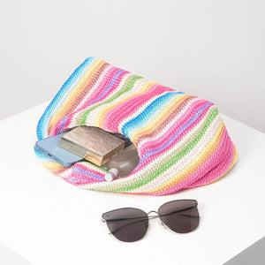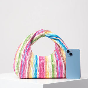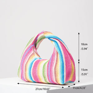Vintage woven handbag, simple commuter bag, beach wind rainbow bag, holiday casual straw purse (random pattern)