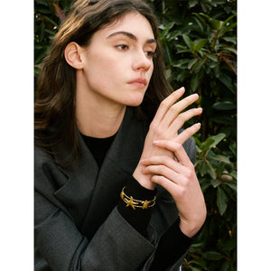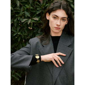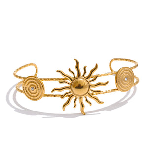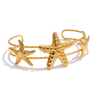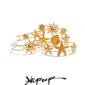 Yhpup Ocean Series Golden PVD Starfish Shell Sun Cuff Bracelet Open Wrist Jewelry Stainless Steel Bangle for Summer Holiday